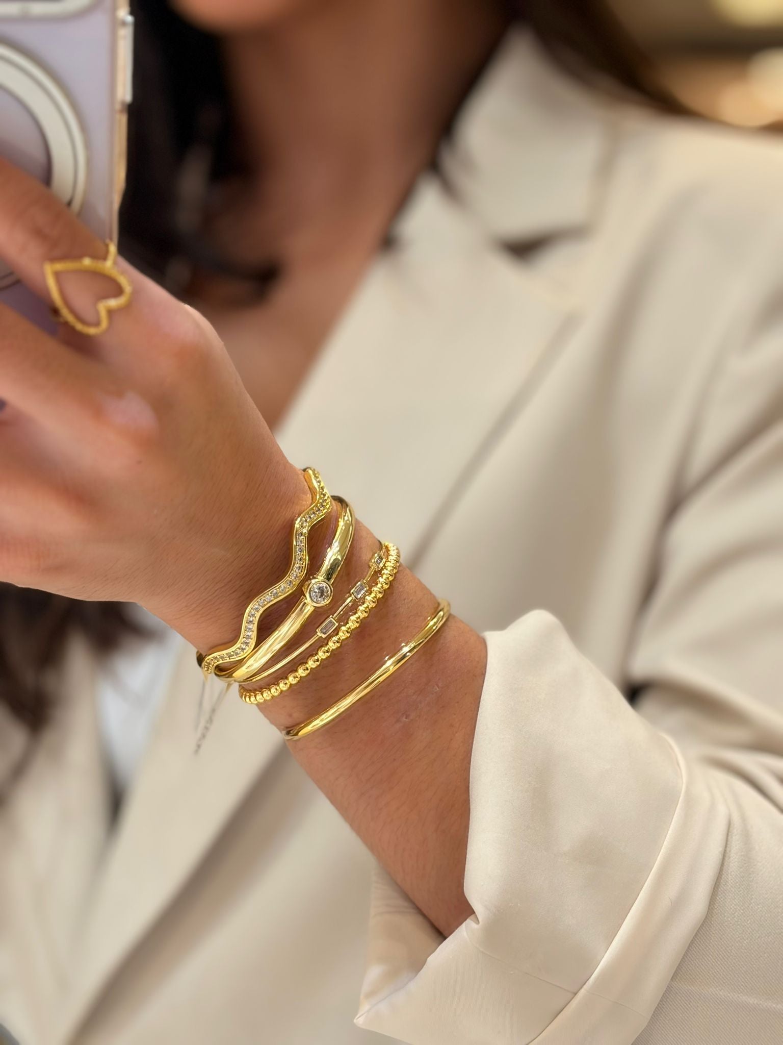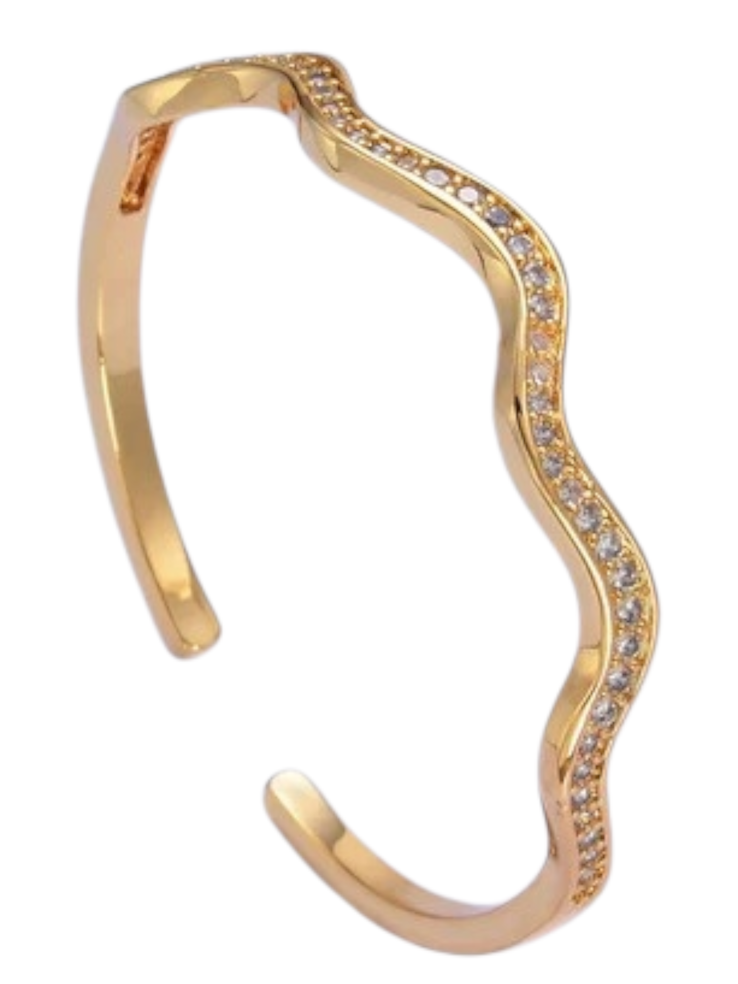 Wave Cuff Bracelet in 24K Gold-Filled Embrace effortless elegance with this stunning wave cuff bracelet, crafted from premium 24K gold-filled material that resists tarnishing and fading. The flowing wave design adds dynamic movement to your wrist while maintaining a sophisticated, timeless appeal. Hypoallergenic construction makes it perfect for sensitive skin, allowing you to wear it confidently every day without irritation. Durable and luxurious, this piece transitions seamlessly from casual to formal occasions, making it an essential addition to any jewelry collection.